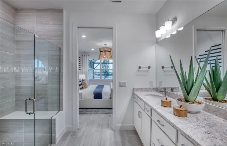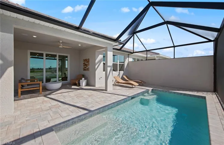 Available now! This move-in ready Ellenwood one-story villa features 2 bedrooms, a den, 2 baths, & 2-car garage on a beautiful water view! Kitchen open to the gathering room, being built with center island, stainless steel appliances, upgraded Quartz counters in the kitchen and bathrooms and screened in covered lanai. TerraWalk features private neighborhood amenities including Internal walking trails throughout the community, 8-Acre lakeside resort amenity campus, Resort amenities including: Pool with spa, fire pit lounge, pickleball courts, tennis courts, bocce ball courts, event lawn, dog park, clubhouse fitness center, exercise studio, locker rooms, card rooms, large community room, catering kitchen, indoor/outdoor social lounge, plus an outdoor bar and grill. TerraWalk is a Gated community of new construction homes with a Luxury 8 acre amenity campus located in Babcock Ranch. Residents will enjoy expansive green space, abundant amenities, and utility-scale solar generation.