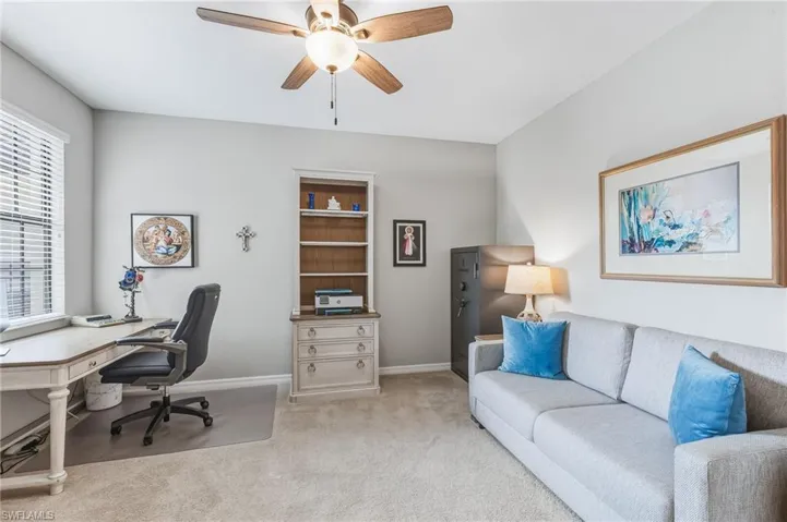 ONE OF THE BEST SUNSET VIEWS IN PELICAN PRESERVE…….Perfectly positioned with a short walk to Casella’s Community Pool, this spacious, second floor unit w/ private elevator spans over 2,500 total sq ft. The bright and sunny unit with its volume, tray ceilings features UPDATES UNIQUE TO THE UNIT – primary bedroom/bathroom privacy door added between the two rooms creating increased privacy + extra guest bath if desired. In addition, new frosted french doors installed to den entry creating privacy and sound barrier for guests using the den as an extra guest bedroom. The open concept designed kitchen has premium stainless steel appliances; 42″ white cabinets; breakfast bar island seating; large walk-in pantry with built-in shelving; and beautiful white quartz counter tops w/ decorative tile backsplash. Multiple sets of sliding glass doors lead out to the newly painted lanai w/ new tile flooring + brand new Storm Smart Hurricane Screens. The enclosed, screened balcony offers endless, panoramic sunsets captured by its coveted western facing lake view. Perfect for anyone seeking a second home or as a permanent residence….this home invites true resort-style living and an elite lifestyle in an amenity rich, active 55+ community. Be sure to check out all the Town Center’s community offerings of multiple sports, arts & crafts activities, social clubs, indoor movies and live concerts. Truly a coastal get-a-way you’ll love coming home to.