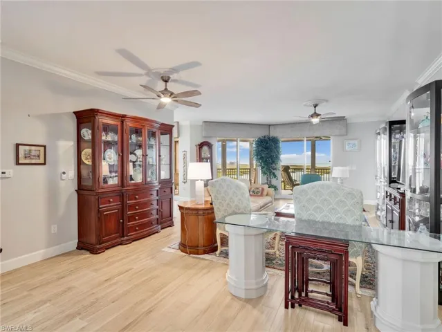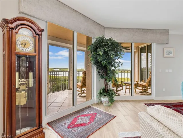 Perched on the 9th floor of Tower Pointe at Arbor Trace, this spacious 3-bedroom, 2.5-bath residence offers 2,030 square feet of living space with a desirable split-bedroom floor plan designed for comfort and privacy. Beautiful porcelain tile flooring throughout provides a clean, modern look that is both durable and low-maintenance. Enjoy abundant natural light and southwest exposure, offering warm afternoon sun and stunning gulf sunset skies from your private vantage point. The open living and dining areas flow seamlessly, creating an ideal setting for both everyday living and entertaining. The split layout places the guest bedrooms apart from the primary suite, allowing residents and visitors to enjoy their own space. Arbor Trace is a resident-owned, independent living community that offers exceptional amenities, including a resort-style heated pool, fitness center, tennis/pickleball, bocce courts, golf putting green, two libraries, special events, and gourmet dining at the clubhouse. Benefit from comprehensive support services such as 24-hour medical monitoring, transportation to medical appointments, shopping, and group outings. Arbor Trace is a vibrant 55+ community that offers the unique advantage of deeded condominium ownership with 100% equity and no financial or medical requirements, allowing you to rent, sell, or pass your home to your heirs. Enjoy peace of mind with an on-site assisted living if you need it.