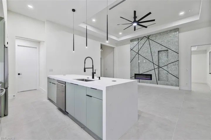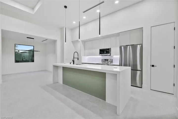 Brand-New 2026 Contemporary Pool Home — Move-In Ready with 10-Year Warranty! Welcome to this modern 3 BR + Den, 2 BA masterpiece with 1,850 SF open-concept living designed for today’s lifestyle. The chef-inspired kitchen features a quartz waterfall island, custom two-tone cabinetry, and stainless steel appliances flowing seamlessly into the spacious great room — perfect for entertaining. Tray ceilings and abundant natural light elevate everyday living. Step outside to your PRIVATE salt-water pool, covered lanai and outdoor kitchen — ideal for Florida indoor-outdoor living. Built with superior quality including impact windows & doors, paver driveway, energy-efficient systems, and a fenced 10,019 SF lot with attached 2-car garage. No HOA, No Flood Insurance Required. Move in now — one of the few new pool homes available in Cape Coral at this value with Certificate of Occupancy in hand and quality craftsmanship throughout. Don’t miss this opportunity!