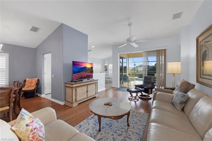 Living the SWFL lifestyle at its finest in Colonial Country Club! Highly sought after single family pool home with LAKE VIEW! TURNKEY! Meticulously maintained, light and bright 3 bedroom, 2 bath, with 2 car garage. Tropical lanai is screen enclosed with serene, gorgeous lake view and private, renovated sparkling pool/spa with option to solar heat or use regular heating system. All newer pool mechanicals. GORGEOUS Hardwood Bamboo Flooring and Tile. Electric Shutter and manual hurricane shutters. Plantation shutters. Easy walk to one of community pools and pickleball! Colonial Country Club was awarded the distinction as one of America’s Healthiest Clubs! Gordon Lewis designed 18-hole golf course is fun, yet challenging to all skill levels with 5 Tees! Tennis and Bocce ball. Fabulous Clubhouse with 2 dining options, Formal or Sunset Grille with indoor/outdoor bar which is perfect to watch your favorite sports! Golf and tennis shops! Spend the day with your family by the club pool with spa and snack shop! Close to all the world class beaches, shopping, medical, restaurants, baseball stadiums and RSW. ALL THIS UNDER $500K!! Make your tropical dream a reality today in Paradise!