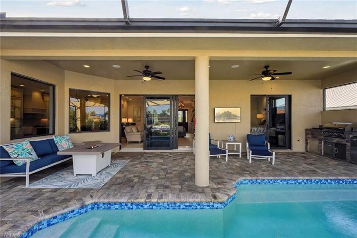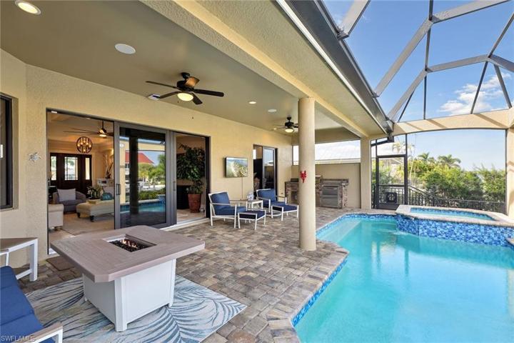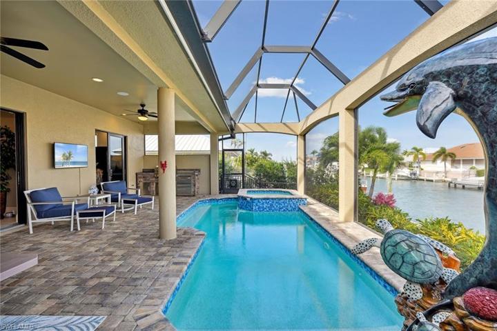 : Location! Location! Location! Located in highly desirable Old Marco with deep water access and seconds to Open Gulf Water! This ” like new” home was built in 2019 with no detail overlooked! Over 2,456 SF under A/C and a total of 3,032 SF! Incredible Open concept lings, stunning kitchen to include large island with custom countertop made of Granite, Mother of Pearl and Petrified wood! Custom back splash, pot filler, walk in pantry, wet bar and wine cooler. Featuring 3 bedrooms, 3 baths plus den. Huge master with dual vanities, central soak tub and walk thru doubles shower, huge master closet! Variegated travertine floors throughout! Crown moldings, impact windows and sliders, granite counters, Sonos whole house WIFI sound system, home security system, central vacuum and remote-controlled blinds! 10′ sliding doors welcome you to the extensive outdoor living space with summer kitchen, pool and spa with Dolphin water feature! Concrete picture frame pool cage allows easy access to your large wrap around dock and lift with two new dual jet ski lifts, cleaning station and sun deck! Seawall was bult in 2019! Complete with artificial turf gated dog run, and air conditioned 3 car garage with new Poly aspartic floor! This home has it all and comes turnkey furnished for your convenience!