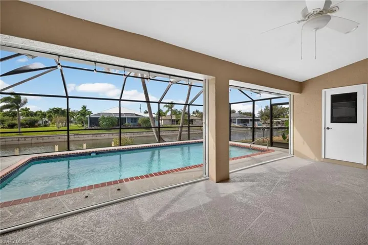 Beautiful and spacious 3-bedroom, 2.5-bath pool home gracefully set along a freshwater canal with access to several scenic lakes. Enjoy a desirable western exposure, offering stunning sunset views over the water. The home has been meticulously cared for and thoughtfully maintained throughout. Recent upgrades include a new roof and gutters in 2022, a hurricane-rated garage door in 2022, and a water heater replaced in 2021. The pool was resurfaced in 2024 and the pool cage was replaced in 2023, creating a refined outdoor setting ideal for relaxing or entertaining. Enjoy boating and fishing directly from your own private dock, just steps from your back door. Ideally located near shopping, dining, and everyday conveniences. City water and sewer are in place and paid, completing this exceptional waterfront residence. The two-car garage currently features a permitted, air-conditioned laundry and office area, with the flexibility to easily convert back to a full two-car garage if desired.