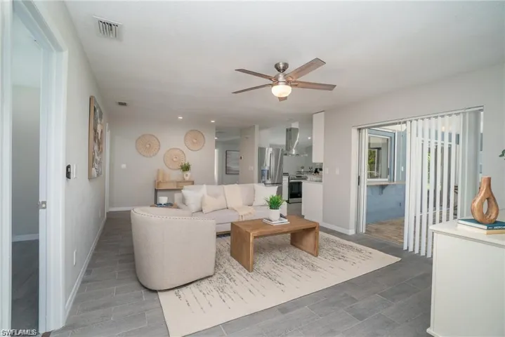 One or more photo(s) has been virtually staged, AI generated or rendered. Welcome to this beautifully maintained 3-bedroom pool home in desirable South Cape Coral, perfectly capturing the sunny Southwest Florida lifestyle buyers are searching for — with NO HOA fees. Newly painted inside and out, this home features a fully renovated kitchen showcasing quartz countertops, soft-close cabinetry, and newer stainless steel appliances. The open-concept floor plan is bright and inviting, highlighted by vaulted ceilings and all-new tile flooring throughout, creating a seamless, modern living space ideal for both everyday comfort and entertaining. All bathrooms have been tastefully updated, reflecting the home’s overall pride of ownership and meticulous maintenance. With generous living areas and a functional layout, there’s plenty of room for friends and family to gather, relax, and enjoy true Florida living. Step outside to your private pool area — a beautiful outdoor retreat perfect for hosting guests, weekend barbecues, or simply soaking up the year-round sunshine. Ideally located just seconds from the Caloosahatchee River, Rotary Park, and the Yacht Club Public Beach, this home offers convenient access to boating, waterfront dining, nature trails, and some of the best coastal amenities Southwest Florida has to offer. Whether you’re seeking a full-time residence, seasonal escape, or investment opportunity, this well-cared-for home delivers space, style, and the unmistakable appeal of sunny SWFL living.