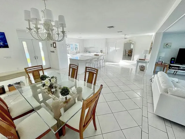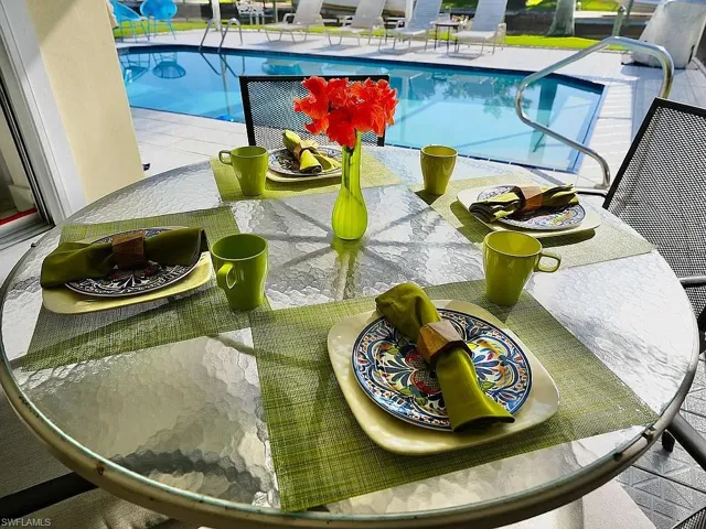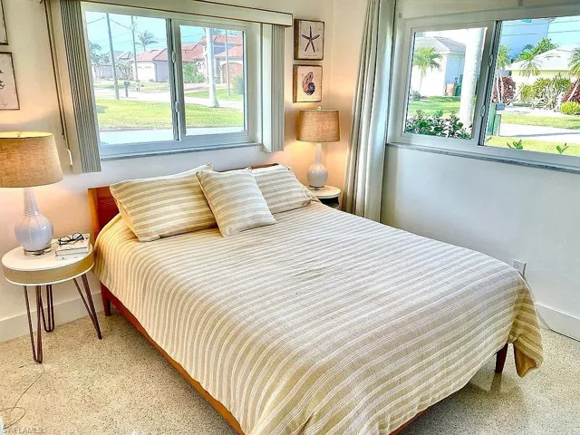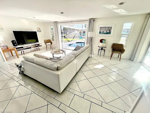 The oversized pool is perfect for a refreshing dip, the generous pool deck allows for extended sunbathing. Love morning light? The lanai is a perfect way to greet the day. Tucked in the palms, it’s an idyllic place for your morning coffee or afternoon cocktail. The oversized quartz island in the newly imagined kitchen accommodates multiple chefs. The open floor plan ensures all can share in the festivities. Relax in the peace of mind that comes with new mechanicals; a new energy efficient HVAC system, new ductwork, new wiring, re-piped plumbing, upgraded lawn irrigation, and new appliances. The gleaming terrazzo floors have been lovingly restored. The exterior is accentuated by designer lighting. Complete hurricane protection on all doors and windows, including the garage door. Furnished and outfitted with the essentials, Calusa Slip is ready be your full time tropical paradise and backyard boating escape, a high-income rental property, or enjoy the best of both worlds.