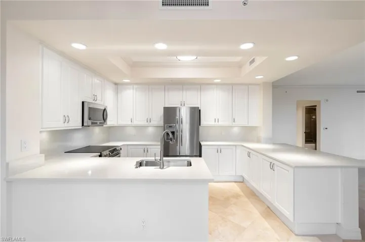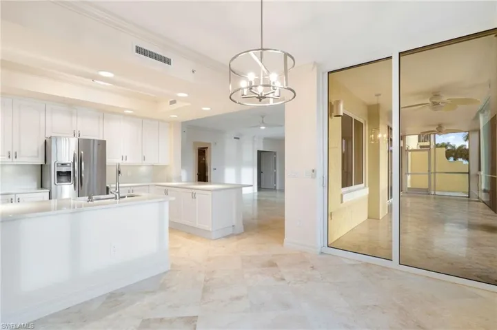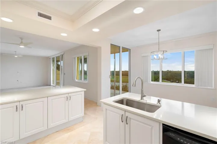 Enjoy panoramic lake and golf course views from this rarely available 2nd floor condo, featuring a PRIVATE COURTYARD that is only available in this one unique unit in Jasmine Bay North. Enjoy stunning sunsets over West Bay Club’s signature 9th hole, as well as amazing sunrises from your bonus lanai on the East side of the building. This spacious great room floor plan with an open kitchen, 3 bedrooms and 3 full baths is perfect for entertaining family and friends. Recent upgrades include Quartz countertops, new carpet in master bedroom, light fixtures, fans, and travertine floors in the guest bedroom. Additional features include, crown molding, custom closets, luxurious window treatments, and private elevator access. West Bay Club’s recent renovations include, Poolside Dining at The Aqua Café, a new state of the art fitness center, and a fabulous new beach club and restaurant currently under construction, and scheduled for a grand opening this January. Additional amenities include pickleball, tennis, bocce, boat storage and boat ramp for direct access to the Gulf of Mexico. Jasmine Bay offers even more amenities such as an infinity pool with private cabanas, spa, and fitness center