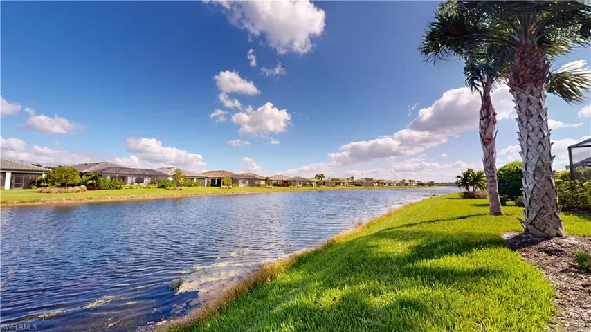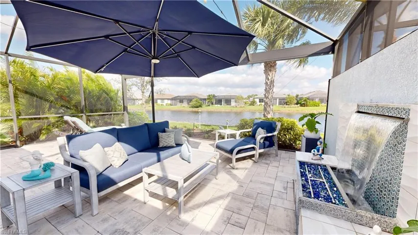 “Your Southwest Florida Getaway”, Del Webb Naples at Ave Maria, , Beautifully Optioned “Serenity” Model Villa w/Extended Rear Lanai 700+ Sq.ft. of Outdoor Living/Entertaining Space/Outdoor Kitchen/ Water Feature/Privacy Wall, on Premium Water Lot, Private Cul-de-Sac Street, Stunning Lake Views, 1554 Sq.Ft. 1894 Total Sq.Ft. 2 Bedrooms, Den, 2 Full Baths, 2 Car Garage. Property is Social Membership. Options Include; Impact Windows/Doors/Rear Sliders, 42” Cabinets w/Crown, Quartz Tops, Tile Backsplash, SS Appliances, French Door Refrigerator, Pendant Lighting, Tile Flooring Throughout, Glass Pane French Doors at Den, 8’ Interior Doors, 5 ¼ Baseboard, Plantation Shutters, Decorative Ceiling Fans (5), Finished Laundry Rm w/Utility Sink, Epoxied Garage Floor, Insulated Garage Door. Outdoor Extended Rear Lanai Features Outdoor Kitchen w/Full Vented Hood, Beautiful Water Feature, Panoramic Framed Enclosure, 700+ Sq.Ft. Outdoor Area, Privacy Wall. HOA Fees Include; Landscaping, Irrigation Water, Cable & Internet, and Amenities Listed Below. Truly a One of Kind. Property Complimented by Oasis Club Resort Style Amenity Center, Resort Pool/Lap Pool/Jacuzzi, Fitness Center, 12 Pickleball Courts/Tennis Courts/Bocce Courts, Hall, Golf Sim, Movement Rm, Activities Director. Championship Golf Course, Pro Shop. “Come Experience the Beauty that is Ave Maria”