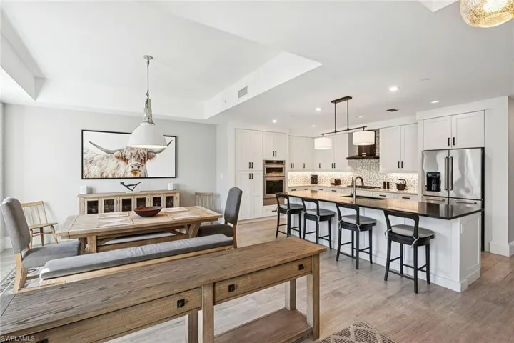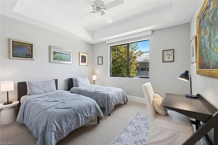 A rare residence available for rent annually in Naples Square. Enjoy the privacy and convenience of a single-family home in this spacious 2-story, 3-bedroom + den home with a private garage and all the perks of downtown condo living. Private entrance, with community pool deck and amenities at condo level make this a uniquely private unit. First floor features a spacious open living/dining area with updated kitchen boasting ample cabinetry, high-end appliances (including gas cooktop!) and oversized island with seating. One first floor bedroom with private full bath, as well as a powder room on the first floor. Take your private elevator or stairs up to the second floor to the owner’s retreat complete with an oversized king bedroom, spa-style bath, balcony, and second living room. A third bedroom with its own full bath, a second powder room, and a full-size laundry room complete the package. Built in 2019, this unit features impact-resistant doors and windows. With the highest walkability score in Naples, you are in recreational and biking distance to everything, including dozens of restaurants, shops on 5th Avenue, 3rd Street, Bayfront, The Design District, groceries, marinas, the beach and more. The building is rich with amenities, including a pool, hot tub, barbecue area, fire pits, social room, fitness center and bike storage as well as a vibrant social community. Some furnishings and artwork may differ from photos shown, partially furnished negotiable.