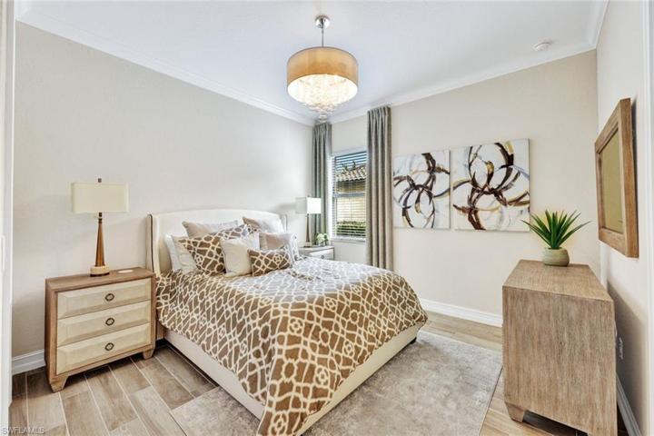 This “Turnkey Furnished” Bougainvillea is a luxurious and spacious home that provides a lifestyle of gracious living in a beautiful setting. With 2800+ square feet of living space, this home was professionally decorated with exquisite details throughout, making it a truly exceptional property. One of the most impressive features of this home is the generous great room, which is anchored by a large island in the kitchen. Offering a welcoming atmosphere that is perfect for entertaining guests or spending time with family. The great room overlooks the vast, screened lanai, which features a sparkling pool and spa, as well as an outdoor kitchen with plenty of covered area for additional living space. A perfect place to relax and enjoy stunning SWFL sunsets overlooking the golf course and lake. The golf membership included with this home provides access to the 18 challenging holes of golf at Bonita National, as well as lighted har tru tennis courts and a pro shop. Enjoy physical fitness? the fitness center offers state-of-the-art equipment. After a workout, residents can relax poolside at the lagoon-style pool and enjoy a frosty drink from the poolside bar and grill.
