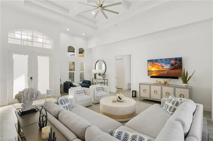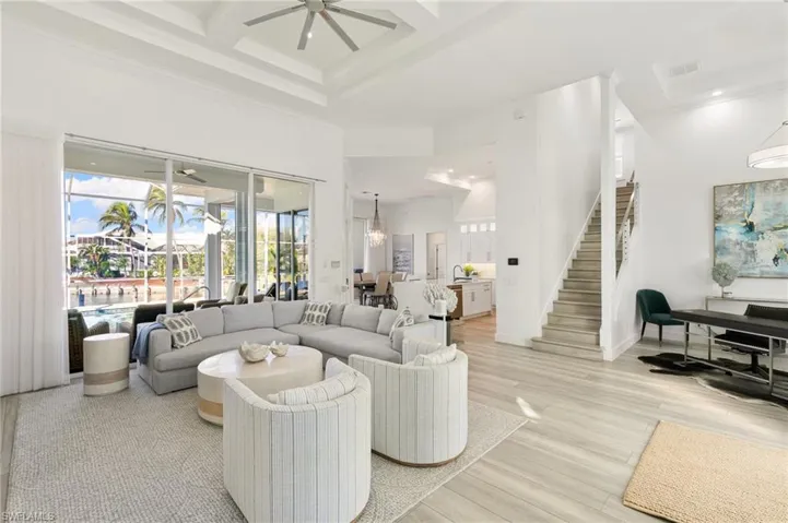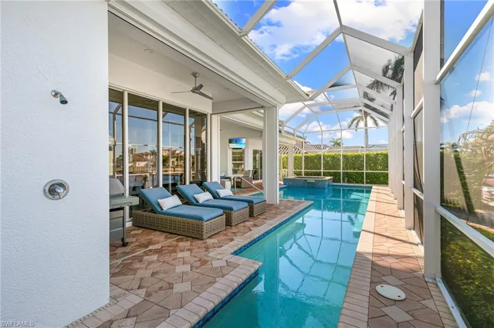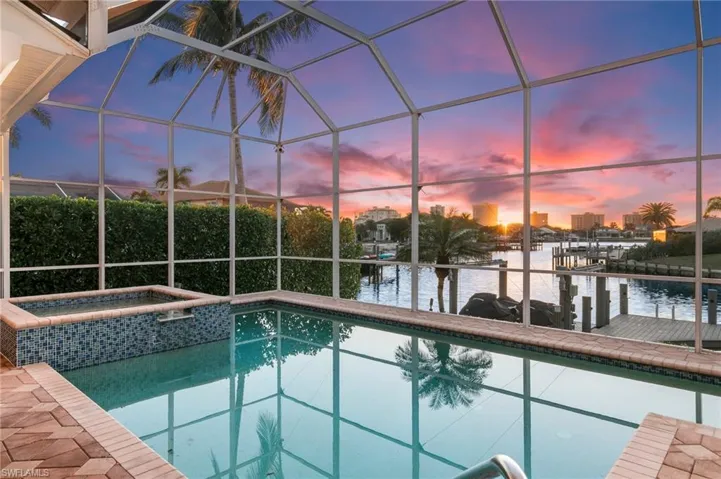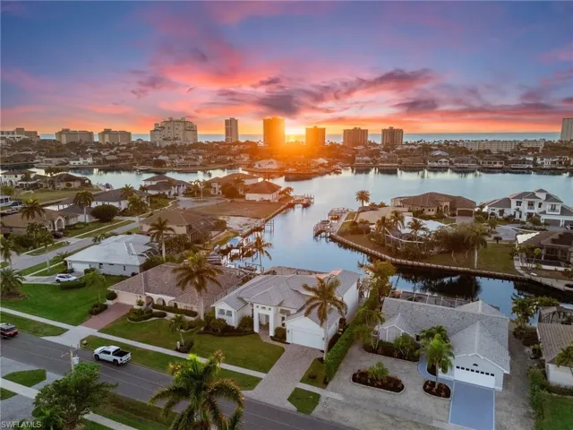 Discover coastal living at its finest with this exquisite 4-bed plus den, 3-bath home on Marco Island. Fully furnished and thoughtfully designed, this two-story retreat offers Gulf access and stunning western rear exposure, treating you to breathtaking sunset views. The home features impact windows, electric shutters, and two 2022 AC units for peace of mind and comfort. Step inside to soaring volume tray and coffered ceilings, a cozy loft, and a well-appointed home office. The gourmet kitchen boasts state-of-the-art stainless steel appliances, a pantry, and a wine cooler, perfect for entertaining. The newly designed lush landscaping, enhanced by elegant landscape lighting, perfectly frames the grand entrance and French doors, creating exceptional curb appeal. Step outside to enjoy your private oasis featuring a pool and spa, a covered seating area for relaxation or entertaining, and a screened balcony that offers breathtaking views of the tranquil waterfront. The property is complete with a boat dock and lift, a new double jet ski dock/lift, and an outdoor shower for the ultimate Florida lifestyle. With a prime location just minutes from beaches, shopping, and dining, this home is a rare gem offering luxury, convenience, and unparalleled views. Make your waterfront dreams a reality!