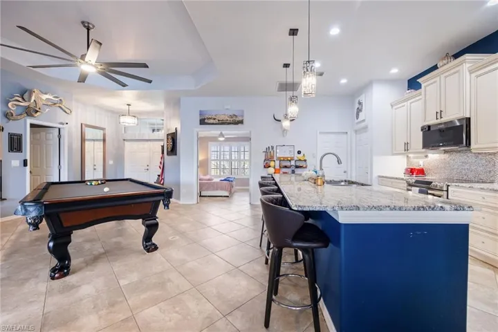 Motivated Seller! Bring all offers! Experience the Best of Florida Living. This waterfront home is nestled on a triple-lot site in a No Flood Zone, offering plenty of space for outdoor enjoyment. Perfect for your furry companions to roam freely! As you step inside, you’ll find 3 bedrooms plus a den, ideal for a home office or additional guest space. High coffered ceilings and an open-concept kitchen create a bright, airy ambiance. Soft-close light cabinetry, a spacious granite island with seating for guests, and modern pendant and recessed lighting. Stainless steel appliances include an induction cooktop, providing both efficiency and style. Easy to maintain tile and wood laminate flooring run throughout the home. Step outside to your private oasis. A spacious pool and spa, both of which can be heated to enjoy year-round. A convenient outdoor shower is available for rinsing off after a swim, and the fully equipped outdoor kitchen makes entertaining perfect. Enjoy the view and a day of fishing on the dock and a waterfront firepit to enjoy on a cool night. Located just minutes from schools, shopping, dining, and only a short drive to Florida’s world-renowned beaches and resorts. Make this your Florida dream home today!