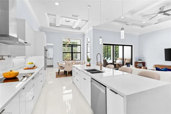 STUNNING 2020 CUSTOM-BUILT LUXURY POOL ESTATE SET ON A SPRAWLING 1.25-ACRE LOT IN BONITA SPRINGS’ COVETED “SAN CARLOS ESTATES!” Enjoy SERENE WOOD VIEWS, exceptional privacy, and a true sense of nature. This contemporary residence showcases an impressive OPEN FLOOR PLAN with 2,304 square feet under air, offering 4 bedrooms, 3 bathrooms, a METAL ROOF, HURRICANE IMPACT WINDOWS & SLIDERS, GENERATOR, 500-GALLON BURIED PROPANE TANK (connected to generator), and a WHOLE-HOUSE WATER FILTRATION SYSTEM. Thoughtfully designed, the home features tile flooring throughout and SOARING 12 – 14 FT. CEILINGS accented with wood paneling and coffered detailing. The CHEF’S KITCHEN is beautifully appointed with WATERFALL QUARTZ COUNTERS, WHITE CABINETRY, a breakfast bar, and an inviting dining area overlooking the pool & outdoors—perfect for entertaining. Expansive sliding glass doors open to your PRIVATE RESORT-STYLE OUTDOOR OASIS, complete with a NEW (2022) HEATED SALTWATER POOL AND SPA WITH WATER FEATURES, an OVERSIZED ITALIAN MARBLE POOL DECK, outdoor shower, and a NEW PICTURE SCREEN ENCLOSURE capturing unobstructed NATURE VIEWS. The luxurious primary suite offers direct lanai access, dual walk-in closets, and a spa-like bath with dual floating vanities, a soaking tub, and a spacious glass-enclosed shower with multiple showerheads. Positioned well off the road, this property is enhanced by a new 240-foot paver driveway (2024), elegant exterior and landscape lighting, and a separate storage shed. Residents of San Carlos Estates enjoy unparalleled space, privacy & nature with the best dining/shopping amenities just down the street. No HOA fees or rental restrictions! Peaceful living in a central location with easy access to US-41, Imperial Pkwy & I-75. 2 mins to the Promenade shopping/dining, less than 5 mins to Coconut Point, 15 mins to world-class beaches & 20 mins to RSW International Airport.