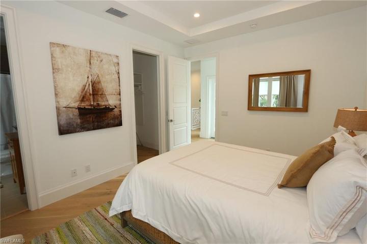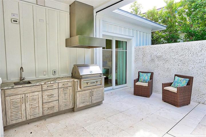 his furnished newly built home by MHK Architecture is perfectly situated just 2 blocks to the beach and a short stroll to Fifth Ave. Open floor plan with 370 Sq. Ft. of sliding pocketed doors to maximize the Florida outdoor living experience. With all important southern exposure, the sun lights up the home. Four bedrooms, a huge bonus room, wide wood plank french oak floors, ceiling details, fireplaces, custom mahogany front door, luxurious baths, natural gas tank-less H/W heaters and much more. Natural gas home. The open design kitchen features a subzero refrigerator, Wolf natural gas range, quartz countertops. Luxurious first floor master, bath has dual sinks, open shower, soaking tub. 3 bedrooms with baths on the second floor. Window lined hallway to a stunning huge bonus room with high ceilings, wet bar, wine cooler and massive windows overlooking Olde Naples. Enjoy the lovely pool and spa with water features, separate shelf pool with overflowing bowls creating the perfect ambiance. Entertain outdoors with summer kitchen w/built-in gas grill and electric roll down screens. Walk to the beach everyday for sunsets and experience the Olde Naples lifestyle.