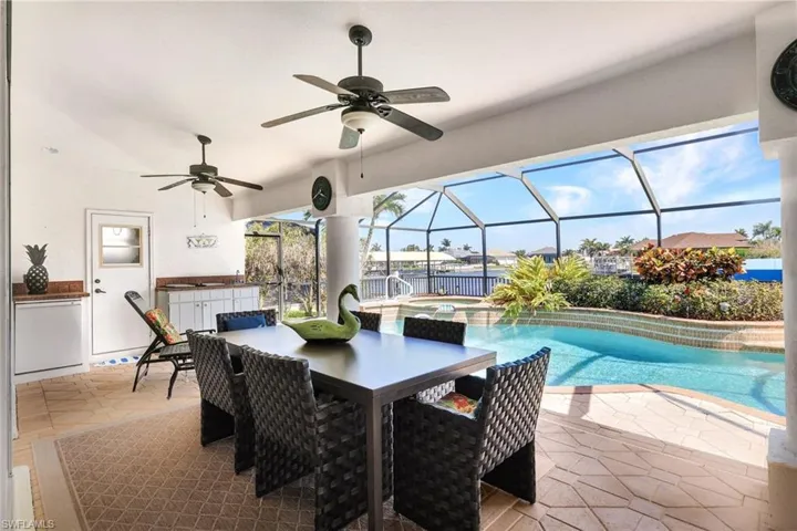 Experience the ultimate in waterfront living with this southern exposure, Gulf access pool home located in a prestigious SW Cape Coral neighborhood. This exceptional property offers quick boat access to Cape Harbour and Tarpon Point, where you can enjoy a variety of restaurants and shops. A little longer boat ride will take you to the beautiful beaches of Fort Myers and Sanibel. Alternatively, enjoy a short car ride to an array of dining options, banking services, healthcare facilities, grocery stores, and the vibrant downtown Cape Coral area. Or just relax and unwind in your heated pool and spa while taking in the breathtaking intersecting canal views of the Splendor and Stardusk canals. Includes a boat dock with composite decking and boat lift with a canopy cover.