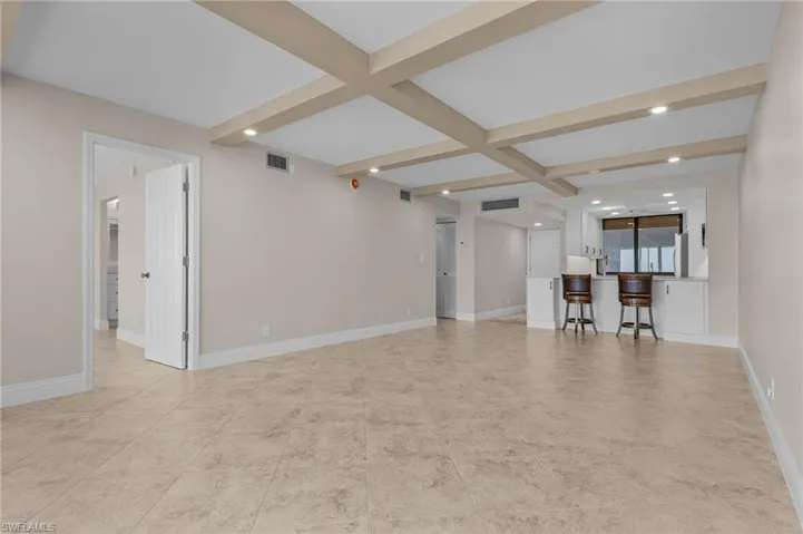 Stunning condo at The Palms at Bay Beach. From the moment you walk into this 2 bed/2 bath condo, you will be in awe of the breathtaking Estero Bay views. Fully updated and move in ready! No expense was spared!! New kitchen with soft close white shaker cabinets, brushed nickel hardware, all new appliances (never used), quartz counter tops and recessed lighting. Open floor plan perfect for entertaining. Coffered ceilings with recessed lighting in the dining room and living room add a touch of elegance to this Fort Myers Beach condo. Bathrooms have been fully updated with new soft close cabinets, hardware and tile showers. Main bedroom offers panoramic views of the bay, walk in closets with built in shelves & drawers and fully updated bathroom. The split bedrooms offer privacy for guests. Guest room has stunning Gulf Views, cedar shelf in closet and new light/ceiling fan. New electric wiring throughout, 4 new electric smoke alarms including 1 new dual smoke carbon monoxide alarm in living room, newer AC and Water heater. Tile flooring throughout. In unit laundry room with new built in cabinets and new washer and dryer. The Palms offers amazing amenities with pool, shuffleboard, fitness center and club house. Additional EBIA Amenities include walking paths, pickleball, bocce ball, tennis, chipping greens, driving cage, tiki huts, deeded beach access, and fishing pier. Boat slips available for purchase on Bay Beach Lane. Conveniently located on the South end of the island close to Santini Plaza, Marina, Lovers Key State Park, Restaurants and shopping!!