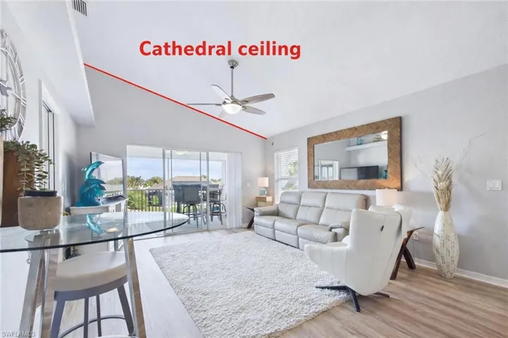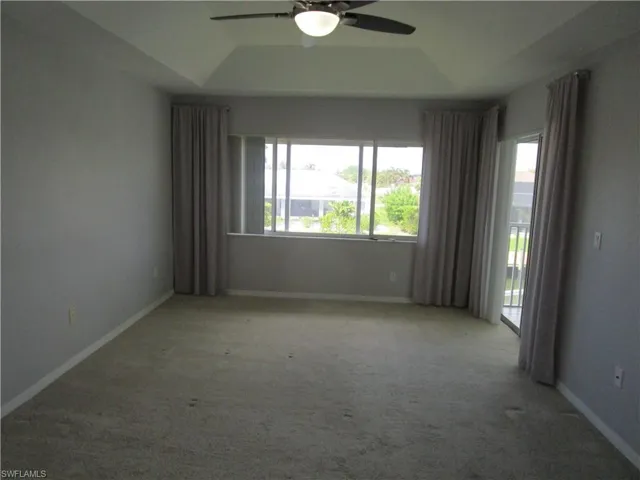 Price recently reduced. Seller offering $4,000 toward buyer’s closing costs with acceptable terms. This stunning 3 bedroom 2 bath Gulf access residence that is PRICED TO SELL! This rare opportunity to own a condo with a deeded boat slip and a 10,000 lb boat lift with Gem Remote Control, new motors and pilings in 2023 costing $12,787 that will accommodate up to a 23’ boat. Located in the highly sought-after section of Cape Coral, this property is just one bridge away from the river leading to the Gulf, making it a boater’s paradise. Conveniently situated near Cape Harbor and Tarpon Point, as well as within walking distance to shopping and restaurants, this second-floor stand-alone building provides privacy with no neighbors sharing walls on any side. The lanai is positioned away from the building for privacy. This is one of two condos that are stand-alone second floors with no neighbors on either side and has more windows for additional light. The condo features windows on all four walls and in both bathrooms, allowing for an abundance of natural light and breezes. Vaulted ceilings in the kitchen, living area, and Coffered ceiling in the Master bedroom create an open and airy atmosphere. New LVT flooring in the living room, kitchen and guest bathroom and new blinds on all windows. The lanai has new screens and provides great airflow. The split bedroom floor plan offers privacy, with a large master bedroom featuring sliders to the lanai overlooking the canal, boat slip, and pool. The master bath includes granite counters, dual sinks, a walk-in closet, separate jetted tub, separate water closet, and a spacious walk-in shower. Two additional guest bedrooms and a guest bathroom with solid surface counters, tub, and shower complete the living space. The kitchen offers solid surface counters and stainless steel appliances, including a new refrigerator in 2025. An in-unit laundry closet includes a washer, dryer, and water heater from 2017. Roll down shutters on all windows and electric shutters in the lanai provide easy storm protection. The complex, consisting of only eight units, shares a heated community pool, spa/hot tub, BBQ area, Tiki on Dock with lounging area, bar area on the pool deck and Happy Hour at Five O’clock every day beverages not included. Recent upgrades include a new composite tile roof in 2023 with 30 year warranty, central AC & heat in 2021 with a new compressor in 2025. The condo also comes with two assigned parking spaces and a storage shed. Not a 55 and over condo all ages Welcome and Pet Friendly – Condo is being sold unfurnished and all walls where pitchures where hanging have been patched and painted