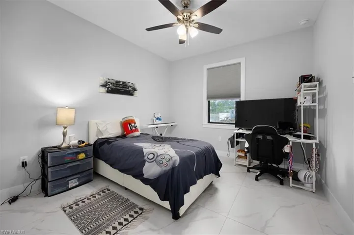 PRICE ADJUSTED ON THIS MODERN HOME WITH INCOME POTENTIAL! Welcome to this beautifully built single-family home offering 3 bedrooms plus a den (easily used as a 4th bedroom or home office), 2 full bathrooms, and a 2-car attached garage. Situated on a cleared 100% upland lot, this property provides peace of mind and future flexibility — build a pool, workshop, or barn without the cost and complications of having to do wetland mitigation. Step inside to discover a modern open-concept design featuring a spacious kitchen with island, quartz countertops, and wood cabinetry throughout the kitchen and bathrooms. The home is completely tiled throughout, combining style with easy maintenance. Every room includes ceiling fans and modern lighting, while impact windows and doors offer safety, energy efficiency, and storm protection. Both bathrooms are thoughtfully designed offering both options of a shower or tub, and the home features neutral colors throughout along with all window blinds included, making it truly move-in ready. Enjoy outdoor living at its finest on the large screened lanai with an outdoor summer kitchen, perfect for entertaining year-round. A whole house reverse osmosis filtration system completes this property with comprehensive water purification on every tap, showers and appliances. The extended paved driveway provides ample parking for multiple vehicles. A standout feature of this property is the additional setup ideal for rental income or multigenerational living, allowing side-by-side occupancy while maintaining privacy and separation from the main home. Located in Golden Gate Estates, surrounded by similarly newer homes, you’ll enjoy the tranquility of owning land while still being just a short drive from the city center, shopping, dining, and the stunning Southwest Florida beaches. Experience the best of Naples-area living with space, privacy, and convenience. Don’t miss this opportunity to own a versatile, new construction home in one of the area’s most desirable acreage communities.