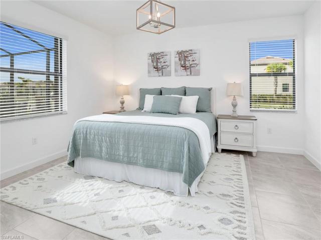 This 2022 built Venice model offers 3 bedrooms, 3 full baths, over 1850 sqft of living space, and a custom heated saltwater pool with sunshelf after home was complete. Situated on a corner lot, you’ll find upgrades like tile flooring throughout the home, quartz counters and natural gas. This single-story home features a split floorplan that divides the comfortable bedrooms with an open layout among the dining room, kitchen and family room. The primary bedroom showcases two walk-in closets and an ensuite bath with dual vanities and shower. The guest bedrooms have ample space for family and guests. Stepping outside, enjoy the covered lanai space overlooking the sparkling pool. The lanai has fabric hurricane screens, and the windows have accordion shutters. Verdana Village is a gated community that offers a resort-style pool and spa, a restaurant coming soon, and a 50,000 square foot indoor sports complex featuring a full-length basketball court, pickle ball courts, a fitness center and movement studio. Outside, you’ll find tennis and pickle ball courts, a dog park, bocce ball, play area, yoga lawn and picnic pavilion.