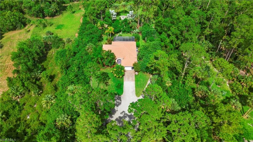 Your dream of living in paradise awaits with this exceptional 3-bedroom, 2-bathroom home in the desirable growing area of Golden Gate Estates! Situated on 2.27 acres of land with a gated entrance, this property boasts a FULLY FENCED yard filled with an array of fruit trees, including guava, banana, and dragon fruit. Enjoy relaxing and gathering in your own serene tropical outdoor oasis, featuring a built-in firepit area in the backyard and a private shaded area on the side of the home. Step inside to find a light and bright interior with an open floorplan. The home offers many luxurious touches such as elegant light fixtures, custom built-ins, limestone mantle, a home stereo system, and crown molding throughout. The guest bedrooms have recently been updated with new carpet, and there is a reverse osmosis system throughout the home. Impact resistant windows provide peace of mind during storms. The expansive screened-in lanai is perfect for entertaining with its heated pool and integrated 8-person jacuzzi. Enjoy the freedom of no HOA and no restrictions in this beautiful property. With easy access to I-75, the SWFL International airport, world class dining, shopping, entertainment, beautiful white-sand SW Florida beaches and much more, don’t miss the opportunity to call this home yours! Some photos include virtual staging. *THIS PROPERTY INCLUDES DESIGN SERVICES, MAKING UPDATES, AS SHOWN, EASY FOR YOUR BUYER*