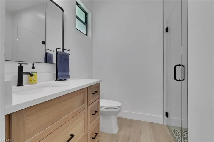 Welcome to this stunning custom built home offering the perfect blend of modern design, open space, and luxurious finishes all set on 2.34 acres of 100% uplands in one of the most desirable and rapidly growing areas of Naples, FL. With 3 bedrooms plus a den, 3 full bathrooms, and an oversized 2 car garage with an extended side, this home was thoughtfully designed for both comfort and style. Step inside to an inviting open concept floor plan highlighted by plank wood tile flooring throughout, volume and tray ceilings, and an abundance of natural light from impact resistant windows and zero corner sliding glass doors that fully open to bring the outdoors in. The seamless flow between living, dining, and kitchen areas creates an ideal setting for both everyday living and entertaining. The chef inspired kitchen is the centerpiece of the home, featuring custom white shaker cabinetry with soft close drawers, quartz countertops, a spacious center island with waterfall edge, modern black fixtures, and designer pendant lighting. Top of the line stainless steel appliances, including double wall ovens, complete this elegant and highly functional space. The owner’s suite offers a peaceful retreat with spa like luxury. The en suite bathroom features dual vanities, a large walk in shower, and high end finishes throughout. Two additional bedrooms and a den provide flexible space for guests, a home office, or a hobby room. Enjoy peace of mind and convenience with a whole home reverse osmosis system, fully fenced and gated property, and impact rated construction throughout. The back portion of the property is completely cleared, offering a blank canvas for your dream pool, guest house, barn, or expansive outdoor living area. With 100% uplands, every inch of the property is usable and ready for your vision. This home captures the essence of refined Naples living a perfect combination of modern architecture, quality craftsmanship, and open acreage with limitless potential. All this while being just minutes away from shopping, dining, schools, and the beautiful Gulf Coast beaches that make Naples one of Florida’s most sought after destinations. Experience elegance, space, and privacy this exceptional property offers it all.