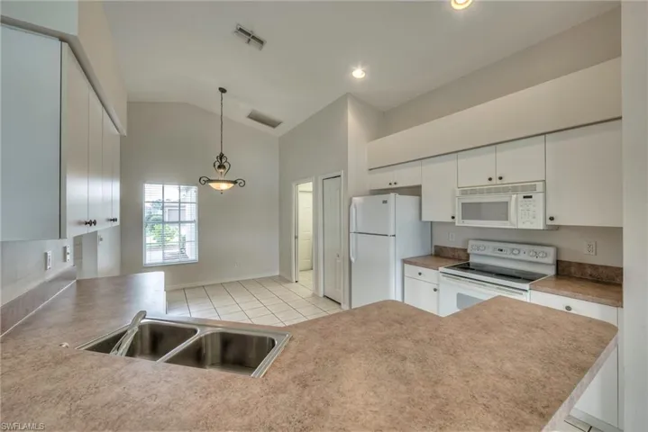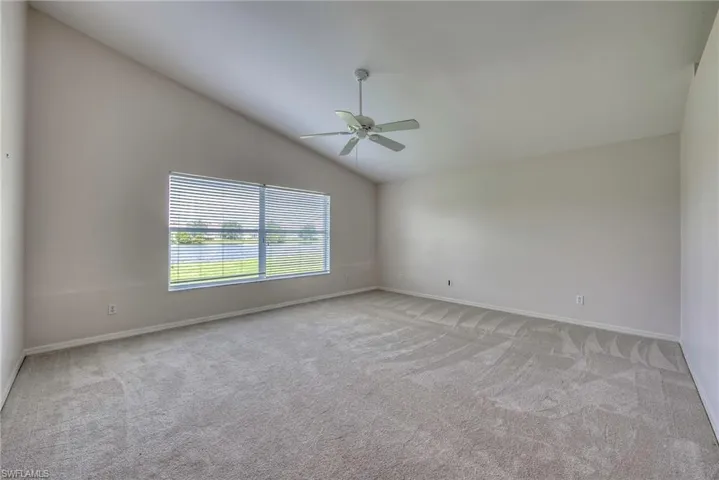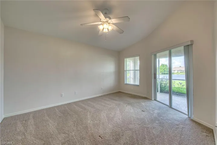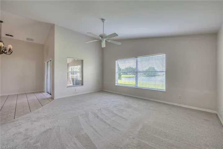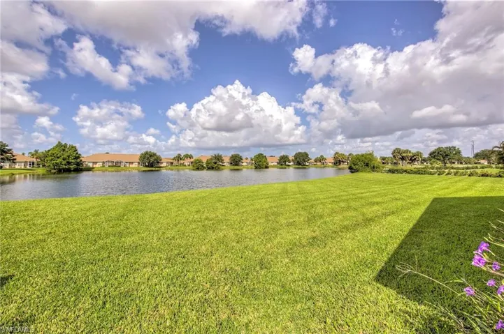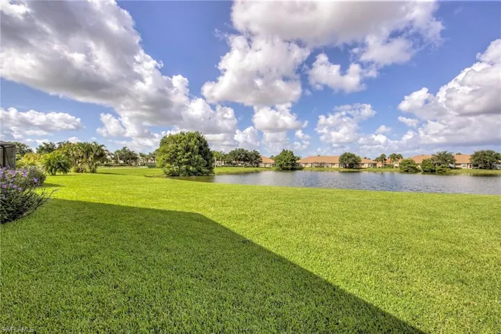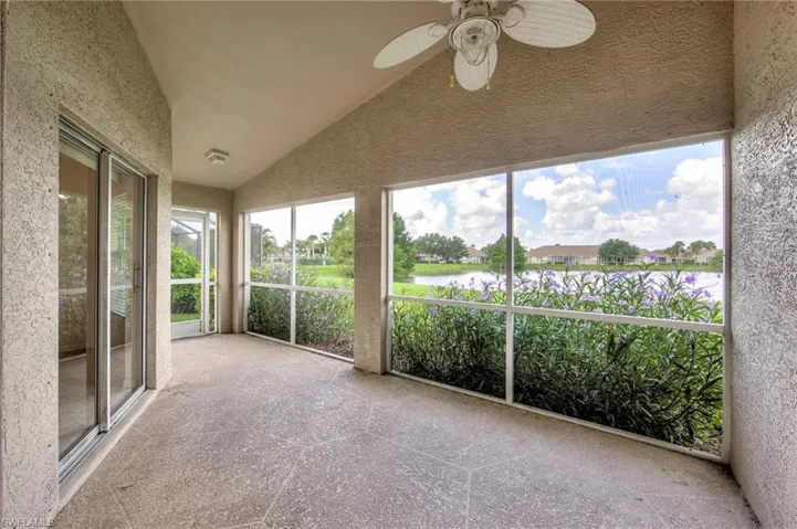 Enjoy peaceful lake and golf course views from this 3 bedroom, 2 bath lakefront home featuring a spacious great room floor plan with vaulted ceilings. The large master bedroom offers a walk-in closet and attached bath with dual sinks and a walk-in shower. The eat-in kitchen includes a breakfast bar and overlooks the family room, creating a comfortable flow ideal for entertaining. Stainless appliances have been installed since pictures were taken. Step out to the screened rear lanai and take in the serene setting of the water and golf course beyond. Lease includes lawn care, basic cable and Internet through Xfinity. Stoneybrook amenities offer something for everyone! Exercise room, tennis courts, pickleball, volleyball, basketball, in-line skating rink, bocce ball and baseball field! The golf course is public so you can pay when you play. Conveniently located close to shopping, dining, interstate, beaches, university and airport. Short walk to golf course clubhouse, CVS, Publix, Miromar mall and Germain arena. 15 minutes from airport baggage claim. Perfect location and great amenities make Stoneybrook a popular choice!