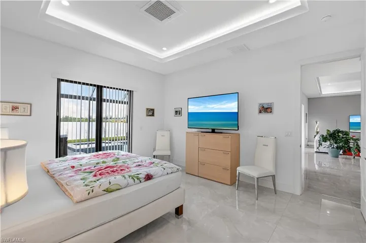 Welcome home to your own slice of paradise! This stunning 2023 custom-built lakefront home is NOT IN A FLOOD ZONE and offers 5 bedrooms, 4 full baths, and 2 half baths—all designed with comfort, style, and everyday living in mind. From the moment you walk in, you’ll love the open layout, high ceilings, and beautiful tile floors throughout. Large impact windows and sliding doors fill the space with natural light and showcase peaceful lake views. The gourmet kitchen is a dream, featuring quartz waterfall countertops, custom cabinetry, stainless steel appliances, and a wine fridge—perfect for cooking, entertaining, or enjoying family time. The primary suite is a private retreat with a spa-style bath, walk-in closets, and its own mini-split A/C for personalized comfort. Step outside to relax or host friends on the spacious screened lanai with outdoor kitchen overlooking the lake. Take a dip in the sparkling salt water pool and spa—both heated by gas—or rinse off at the convenient outdoor pool shower before you simply unwind and enjoy quiet mornings by the water or unforgettable sunset views in the evening. Additional highlights include a tankless gas water heater, 500 ug in-ground propane tank, stand-by generator hook up ready, two-car garage, and energy-efficient features throughout. Seller will contribute $10,000 toward closing costs. Located in a quiet SW Cape Coral neighborhood close to great schools, shopping, dining, and beaches, this home blends luxury and livability perfectly. Move right in and start enjoying the best of the Florida lifestyle!