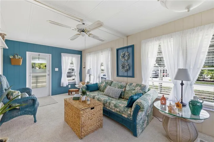 BEAUTIFULLY FURNISHED AND DECORATED–AND IT’S ALL INCLUDED!!! Two-beds, two-baths, front sun room, side screened lanai, corner lot, and recent upgrades make this a great choice for your home in the sunshine state. Upgrades include a 2024 roof, 2024 HVAC system, electrical panel inspected and repaired 2025, 2025 hot water heater installation, and an attractive new back door. Seller had a recent 4-point inspection which is available for review. The primary ensuite is stunning as is the guest bedroom. The all-included lovely furnishings and decor are beautifully arranged, and you’ll enjoy viewing the eye-catching and interesting spaces throughout the home.