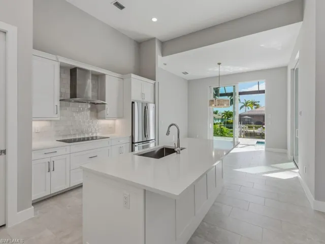 One or more photo(s) has been virtually staged, AI generated or rendered. Nestled within a popular water indirect neighborhood, this brand new residence boasts an enviable location & is set against the backdrop of a newly constructed seawall. Built by FCI Homes and completed in December 2025,.the St. Bart’s great room model epitomizes luxury living & features four bedrooms, three & a half baths, an office (or may be used as a 5th bedroom), and an array of upgraded built-in appliances, radiating modern elegance. The expansive kitchen island invites culinary adventures, complemented by 10-foot sliding glass doors that flood the great room with natural light. Throughout the neutral hues create a serene ambiance, while outdoor amenities such as an inviting pool, spa, & outdoor kitchen beckon for entertainment. A paver driveway adds to the home’s curb appeal, while a pool cage with extra-wide picture window openings seamlessly blends indoor & outdoor living. For fishing enthusiasts, boating towards the south end of Marco Island into the Ten Thousand Islands is a top choice, offering exceptional backwater fishing, or venture out into the Gulf to enjoy great open-water fishing. The home was built to an 11 foot elevation, higher than most homes out there today. With its myriad offerings, this property presents an exceptional opportunity to embrace the tropical lifestyle synonymous with Marco Island!