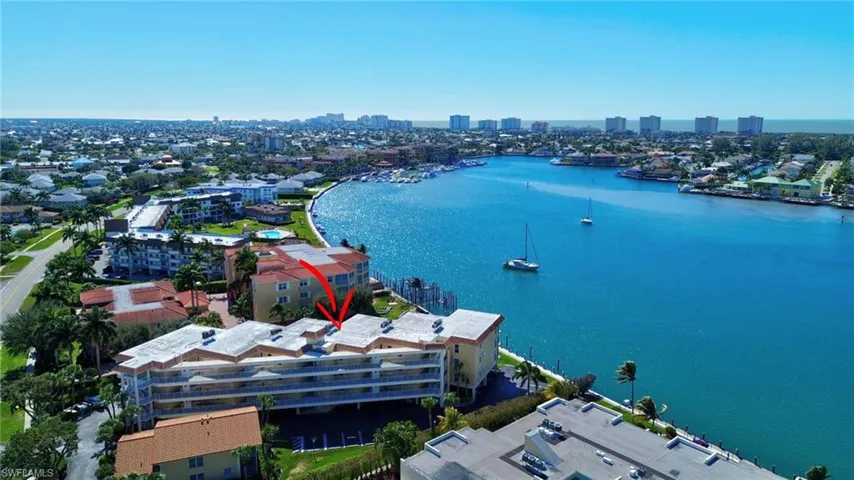 Perched on the penthouse level of Villa Del Mare, this turnkey, waterfront residence offers sweeping views across Smokehouse Bay and an exceptional sense of privacy. The interior is bright and welcoming, featuring impact-resistant windows and doors and a well-designed layout that maximizes natural light and water views. The kitchen overlooks the main living area and opens to the waterfront balcony, providing a functional and comfortable space for daily living and entertaining. Two bedrooms and two full bathrooms offer flexible accommodations, while a new full-size washer and dryer add everyday convenience. The covered lanai extends the living space outdoors, creating an ideal setting to relax and take in bay breezes and sunset skies. A large storage closet on the balcony enhances functionality. Community elevator is located just around the corner and residents enjoy covered assigned parking. Villa Del Mare is an intimate, boutique condominium community featuring a bayside swimming pool and common boat dock, all just a short five-minute walk to the dining, shopping, and entertainment of The Esplanade. Penthouse-level waterfront residences in boutique communities are rarely available—an outstanding opportunity to enjoy the best of island living.