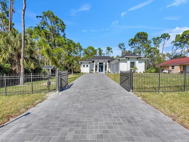 SOUGHT AFTER…SAN CARLOS ESTATES….OVER A 1/2 ACRE….NEW CONSTRUCTION – MOVE-IN READY! Gorgeous custom built pool home with luxury features throughout- ALL impact resistant windows/doors, designer grade light fixtures & fans, volume & coffer ceilings, sliding barn door to den/home office, completely fenced-in property with electric front entry, side facing 3-car garage with epoxy floor WITH ELECTRIC CAR CHARGER hook-up, heated pool & spa, summer kitchen with grill and separate burner, Euro designed cabinetry, quartz countertops, stunning bathroom designs, custom storage systems, and high-end hardware. Not only does the interior of the home have a fantastic open concept living layout, the huge rear lanai with a custom built pool/spa & large pool deck gives you the ideal space for relaxing in the Florida sun and/or entertaining. Situated in a highly desired Bonita Springs community that enjoys easy access to the downtown/riverfront district, short drive to US41 & I-75, and surrounded by tons of shopping & dining options. This home, which was built with the utmost integrity & quality construction, is perfect for someone who wants to live the SWFL life either just seasonally or annually! MUST SEE TO APPRECIATE ALL THE EXTRA’S.
