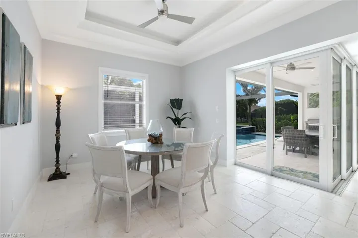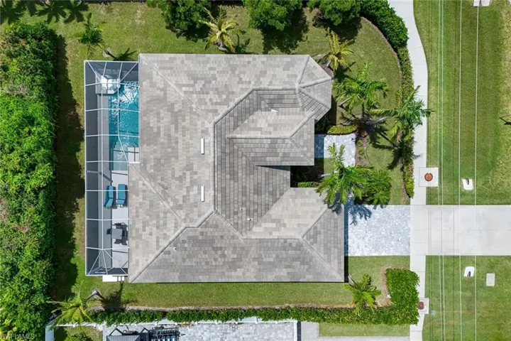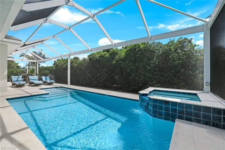 Step outside through zero-corner sliders to your private screened patio, where a heated pool and waterfall spa set the scene for alfresco dining at the built-in grill and bar-top seating, or unwind in the lounge area under the stars. Beyond the covered lanai, a manicured lawn bordered by privacy hedges offers room to roam. Practical luxuries include an epoxy-floored two-car garage, impact-resistant sliders and windows, and a discreet security system. Ideally situated just minutes from pristine beaches, Mackle Park, Marco Island Racket center for tennis and pickleball, top-rated schools, shops and restaurants. This home combines contemporary flair with convenience for the ultimate Marco Island retreat.