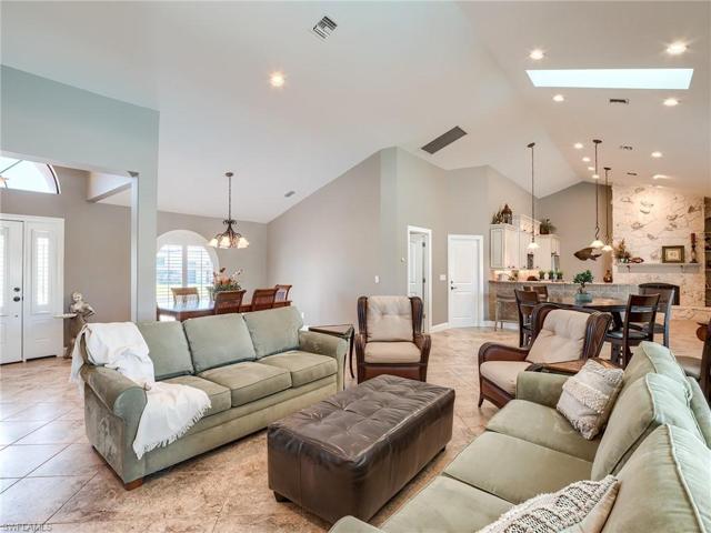Palm Acres is a hidden gem in Lee County! This well maintained 4-bedroom home offers a dream location with direct deep-water access that is only 5 minutes to the Gulf of Mexico and Sanibel Island via Shell Creek. The dock is equipped with two boat lifts, one 16,000# lift and one 10,000# lift. The living area is appointed with 2 1/2 baths, granite countertops, stainless-steel appliances; and a stunning stone fireplace in the open kitchen area. The ample exterior space and the open floor plan make it perfect for entertaining. This home suffered no storm damage; has a new air conditioner with a 10-year warranty; and a brand-new circular paver driveway. In addition to a 2-car garage, there is a bonus for the Angler…an air-conditioned tackle room with outdoor access! The home is offered as is and furnished turnkey.