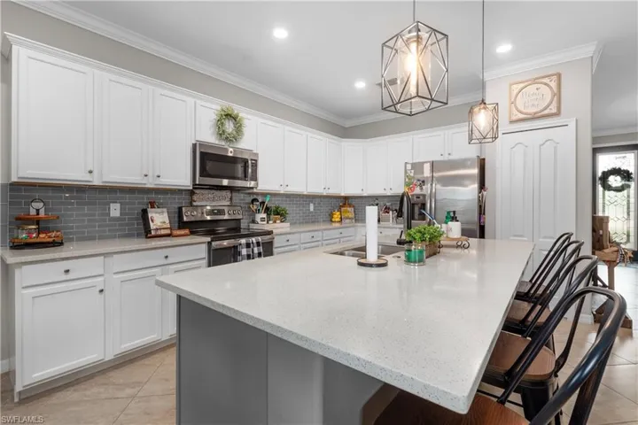Welcome to this beautiful 4-bedroom, 3-bathroom home, offering 2,606 square feet of stylish and functional living space in the desirable Hampton Lakes at River Hall community. Freshly painted inside and out, this move-in-ready home is designed to impress. The spacious open floor plan is perfect for both everyday living and entertaining. The kitchen features quartz countertops, stainless steel appliances, and select modern farmhouse-inspired fixtures, blending style with practicality. A large loft provides versatile space, ideal for a home office, playroom, or extra living area. The master suite offers a tranquil retreat, complete with a luxurious en-suite bathroom featuring dual sinks, a soaking tub, and a walk-in shower. Outdoor living is a highlight, with a screened-in patio overlooking a private, fenced backyard—perfect for relaxing evenings or hosting guests. Additional features include ample storage, a dedicated laundry room, and plenty of natural light throughout the home. Hampton Lakes at River Hall enhances your lifestyle with convenient amenities, including a resort-style pool, tennis and pickleball courts, a fitness center, a playground, and community gathering spaces. Its prime location, just six miles from I-75, offers easy access to Downtown Fort Myers, the Gulf Coast beaches, and other Southwest Florida attractions. Families will also appreciate being close to River Hall Elementary. This home is the perfect combination of comfort, style, and location—don’t miss your opportunity to make it yours!