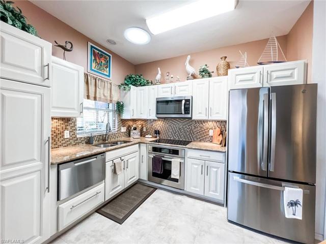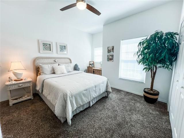 Price to sell! Move in Ready, beautifully updated single family home in gated community. Open floor plan with updated tile flooring. Living room with lots of natural light and slider out to lanai. Dining area in corner of the room, great for entertaining. Highly upgraded kitchen, with pull out cabinets, granite countertops, induction cooktop, dishwasher drawer, French door fridge, all stainless steel appliances. Sliders from kitchen lead to lanai. With split bedrooms, featuring dual master suites, both with new carpet. Front bedroom has nook for perfect for a desk, back bedroom has walk in closet. Extended 300sqft screen lanai is the perfect spot to enjoy Florida outdoors. Large concrete patio on the side, great spot for grilling. Laundry in garage. 2 front windows are impact glass. Roof 2021. AC 2023. Furniture negotiable. Island Club has 250 homes with a 23-acre lake for fishing or kayaking. Affordable HOA fees, only $700 per quarter, include Water, Sewer, Lawn Maintenance and cable! Lakefront clubhouse with community pool, spa and fitness room, Tennis, Pickleball, and more! Easy access to RSW airport, FGCU, and shopping! Estero Crossings has restaurants right in front!