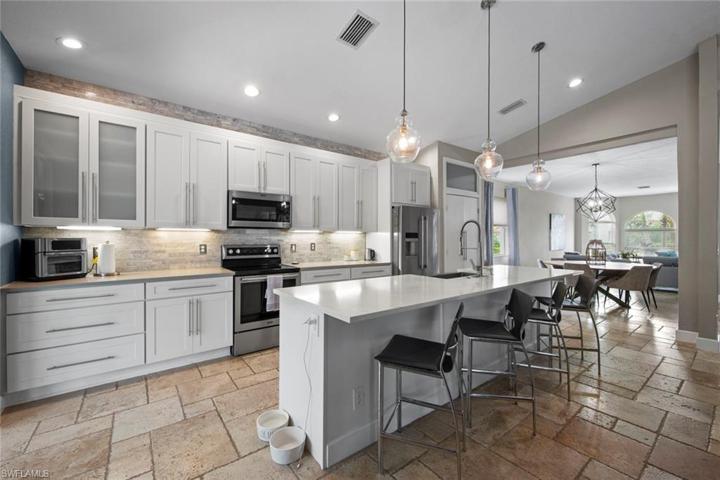 Look no further as this spacious 2-story, 4-bedroom home can be yours in a neighborhood offering a wide variety of amenities for all! Many upgrades throughout with a new roof in 2020. Fully remodeled kitchen with sought after features, including white cabinetry, counter-high island/breakfast bar stainless appliances with French refrigerator and backsplash tile for added appeal! Convenient first floor master suite plus master bath remodel in 2023 with large white marble tile on the walls surrounded by a beautiful stand-alone tub, walk-in glass-in shower, and dual sinks. 2nd floor with 3 bedrooms and loft area to make your own. Enjoy your privacy and entertain outdoors with a nice-size wooded backyard, Travertine floors in the lanai with custom built-in pool, new pool pump installed in 2021. This community offers so many amenities, resort-style pool/spa, bocce and the growing sport of pickleball, tennis, soccer/volleyball courts, plus more! Plus located in the popular Estero area, close to Hertz arena, airport, FGCU, outdoor malls, variety of dining, golf and only a 20-minute ride to the gorgeous, white sandy beach in Bonita Springs.