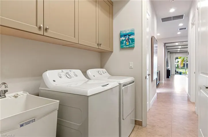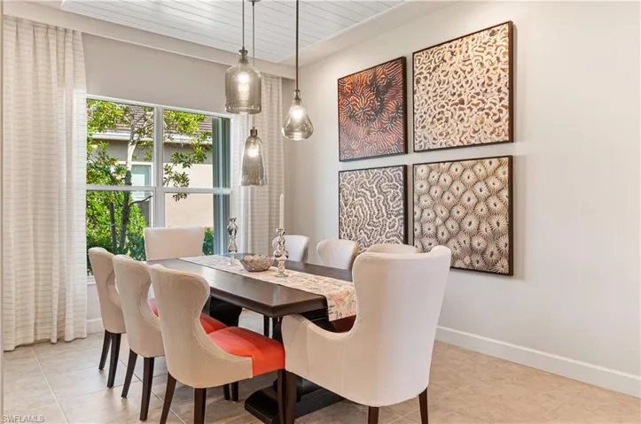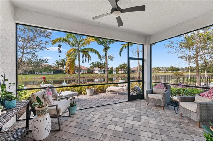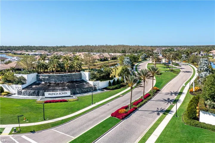 Stunning designer-decorated 3 bedroom, 3 full bath Villa at Valencia Bonita. Former model home with luxury improvements: designer tile, premium cabinetry, quartz counters, impact glass & custom shutters, designer lighting fixtures, 3 ceiling fans, expanded paver lanai, wallcovering, custom mirrors, custom trim, crown molding & shiplap, designer window treatments, tile feature wall in Great Room, built-ins, upgraded appliances. Private entry, premium lakefront lot, upgraded paver driveway & walkway, 2 car garage w/epoxy floor, lush landscaping. Neutrally decorated; partially furnished. Three minute walk to the spectacular 45,000 sq ft Clubhouse & Amenity Center featuring a Social Hall for concerts & entertainment, theme nights, indoor/outdoor Restaurant/bar, spa/nail salon, gym, cabanas, fitness classes, billiards, card rooms, pottery room, cooking studio, 8 tennis/8 pickleball/2 bocce courts, pro-shop, dog park, myriad resident clubs. Quick closing possible.