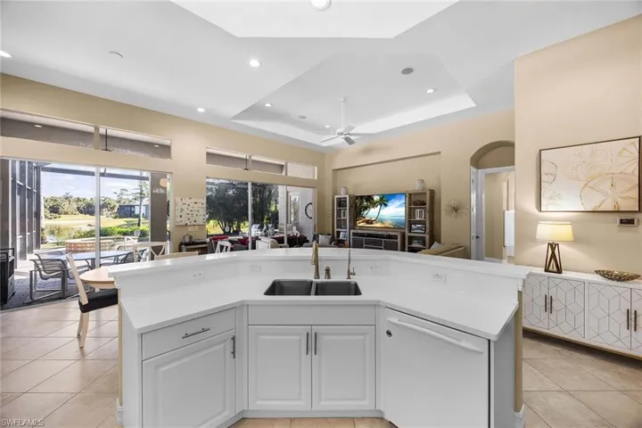 Introducing a rare opportunity to acquire a San Remo residence featuring a sought-after and enduring open floor plan. This well-maintained home includes plantation shutters for stylish light control and ceiling speakers with an amplifier for music in living areas and lanai. Recent upgrades over last five years include a new air conditioner, updated bath countertops, modern faucets and fixtures, plus fresh paint inside and out. The kitchen features a GE Monogram built-in microwave, wall oven, and 45-inch refrigerator, induction cooktop with GE 50-amp wiring for reliability. Water quality is improved with reverse osmosis, and washer and dryer are newly upgraded. The main bedroom is finished with wood flooring, while diagonal tile is used throughout the remainder of the home. The electrical panel was replaced, enhancing safety and reliability of the home’s electrical system. The roof has been replaced, new outdoor garage lights were installed and the garage door insulated to improve energy efficiency. The lanai features a children’s safety fence, picture window screen with views of water, golf and preserve areas, and privacy screens for a peaceful setting. The saltwater pool includes a variable speed pump and heater for year-round comfort. Electric Kevlar shutters provide added safety and convenience. Your deeded membership grants you access to the renowned Players Club and Spa. This club sets the standard for resort community amenities, featuring three swimming pools, 13 tennis courts, four pickleball courts, four bocce courts, a staffed fitness center and a full-service spa. You can enjoy dining at two on-site restaurants, which offer indoor and outdoor seating for either relaxed or fine dining experiences. Lely Resort is conveniently close to amenities, restaurants, and beaches of Marco Island and downtown Naples.