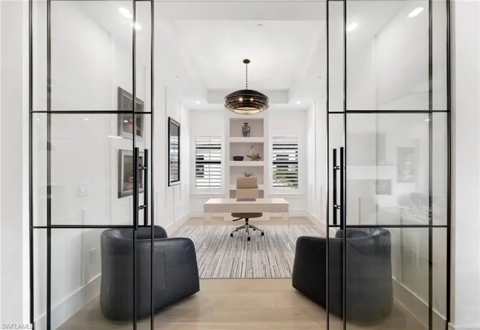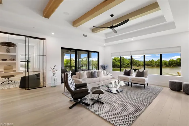 Step inside to discover soaring elegances with upgraded wide-plank wood floors, designer hardware, and timeless finishes throughout. The chef-inspired kitchen is fully equipped with professional-grade Wolf, Cove, and Sub-Zero appliances, stunning custom countertops, and ample cabinetry-perfect for both everyday living and entertaining in style. The residence features custom-designed closets, a private elevator with luxury upgrades, and state-of-the art whole home Tv’s and sound system for seamless living. A cozy fireplace enhances the main living space, creating an inviting atmosphere year-around. Garage has custom epoxy floors, electric charging and extra storage. The outdoors is just as impressive, with spacious outdoor lanai with hurricane screens and a beautiful summer kitchen awaiting its first use, ideal for hosting or relaxing in privacy. Miromar Lakes features 700 acres of fresh-water lakes, with boating, fishing, swimming, water skiing, 3 miles of sand beaches, two marinas, Caribbean style beach grill for breakfast, lunch and daily happy hour and pool service, exquisite club house for main dining, resort style pool, full-service spa, fitness center, golf, tennis, pickleball and bocce courts.