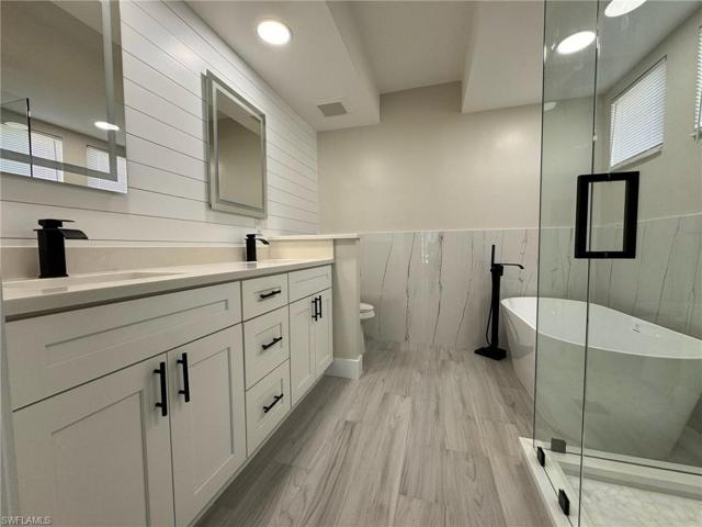 Beautifully remodeled first floor 2 bed/2 bath condo in the pristine Glencove at Pelican Bay, close to everything Naples’ resort-style living has to offer. Tram to a 3 miles long private beach with restaurants, kayaks and sailboats at the Beach Pavilion, 18 Har Tru tennis courts with pro shop and community center with state-of-the-art fitness are just a few of the amenities offered by the Pelican Bay Community. The unit was updated with wood plank style tile throughout, white shiplap walls, new doors and hardware, modern light fixtures, white shaker cabinets with matching granite countertops in the kitchen and both bathrooms. New water heater and washer/dryer set was also added to the modern stainless-steel appliances. The master bathroom offers double sinks, freestanding soaking bathtub, frameless shower door and lighted mirrors for you to call it HOME.