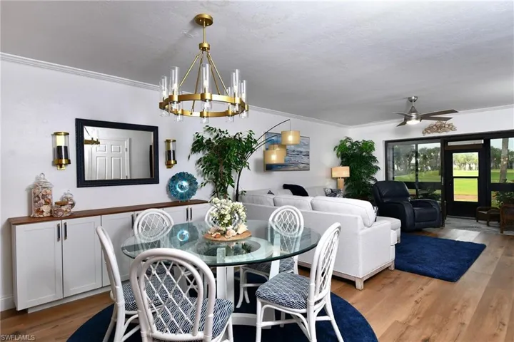 Welcone to this beautifully appointed and stylishly furnished condo in the sought after golf and tennis community of Kelly Greens. With a private driveway leading into your one car garage, this residence offers convenience and comfort from the moment you arrive. Tastefully renovated, this home offers the perfect blend of comfort and design, featuring luxury vinyl tile flooring, crown molding, pocket doors designed to provide privacy and comfort to family and friends who are visiting, and much more! The well designed kitchen features a large pantry, ceramic back splash, and a built-in bench with storage, table and chairs. Every detail is carefully crafted, blending luxury with timeless comfort. Both front and back lanais are enclosed, allowing a seamless traffic flow, ideal for both everyday living as well as entertaining. Spectacular water and golf views from the back lanai set the stage for unforgettable Florida sunsets. Kelly Greens is a bundled golf community with a Gordon Lewis designed, meticulously maintained course challenging and fun for all levels of golfers. An active tennis and pickleball community, indoor and outdoor dining, new fitness center and clubhouse, and numerous activities are featured as well. Truly a slice of paradise! Offered TURNKEY…move right in! Arrange an in person or video showing today!