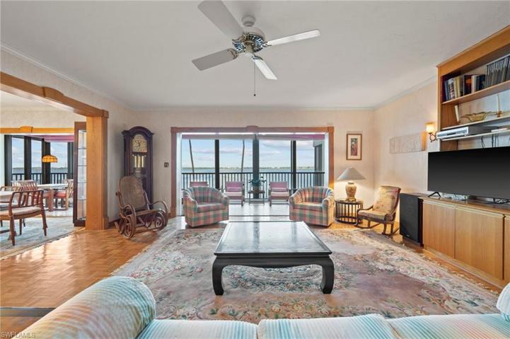 Popular Riverfront Community a few city blocks from the Entertainment and Dining offered in Historic Downtown Fort Myers. Relax and Enjoy beautiful sunsets overlooking the Caloosahatchee River from your 3 bedroom 2 bath condo with over 2200 sq ft of living area. BONUS: This unit includes TWO parking garage spaces! It is a PET FRIENDLY community. SECURITY = 24/7 guard gate and fencing. Other features: Custom built-ins. Wet Bar. Plantation Shutters. Hurricane rated sliders off the living room and formal dining room with electric shutters on other sliding doors. A newer Tankless hot water heater. Pointe Royale’s amenities include a newly renovated riverfront POOL and community clubhouse center, FITNESS facility, TENNIS courts, popular PICKLEBALL courts, additional guest parking and car wash area. Pointe Royale is a pleasant stroll to all the Ft. Myers Downtown River District has to offer from multiple restaurants to the Theatre, River walk and Parks. Other Shopping, i.e Publix, Pinchers restaurant is right next door, and the Edison & Ford Winter Estates are just around the corner on McGregor Blvd. Take time to see this property and all it has to offer you.