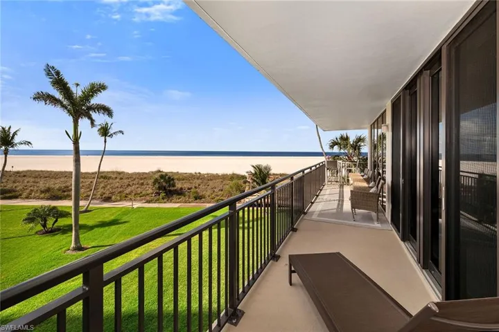 Looking for the beachfront retreat with breathtaking gulf views and modern luxury? This beautifully remodeled, fully furnished condominium in Tradewinds of Marco Island offers an elegant coastal escape with all the comforts of a high-end model home. With an open-concept layout, custom upgrades and a private corner balcony, this residence is designed for effortless relaxation. Enjoy spectacular sunrises and sunsets over Marco Beach, with unobstructed gulf views providing an ever-changing backdrop of swaying palm trees and sparkling waters. All-new impact sliders and windows, installed just three years ago, enhance security and energy efficiency. The bright and airy interior is enhanced by custom wood-trim ceilings, crown molding, modern ceiling fans and light fixtures, and new ceramic tile flooring throughout with no carpet. The sleek, open kitchen is a chef’s dream, featuring white shaker-style cabinetry, quartz countertops, a tile backsplash, and under-cabinet and in-cabinet lighting. A tray ceiling with rope lighting adds ambiance, while the bar counter provides additional seating. Newer, high-end stainless steel appliances, including a range, microwave, refrigerator/freezer, and dishwasher, complete the space. The adjacent dining and living areas flow seamlessly onto the wraparound lanai, where stunning gulf and beach views set the scene for island living. A custom-built wet bar with wine shelving adds a touch of sophistication for entertaining. The owner’s suite is a peaceful sanctuary offering direct lanai access and breathtaking gulf views. The spa-like en-suite bath features a white vanity with quartz countertops, a custom mirror, and a walk-in shower with floor-to-ceiling tile and a frameless glass enclosure. The guest bedroom is equally inviting, with easy access to a full bath featuring a quartz vanity, a full-width mirror and a walk-in shower. In the sought-after Tradewinds community, residents enjoy resort-style amenities, including a beachfront pool, tiki bar, social room, library and lush tropical landscaping. The secured lobby, on-site manager, grill area, vehicle wash, and private beach access enhance the convenience and luxury of this exclusive enclave. Just minutes from shopping and dining, this stunning gulf-front condominium is the ultimate snowbird getaway, offering a blend of island charm and modern sophistication. Schedule your private showing today!