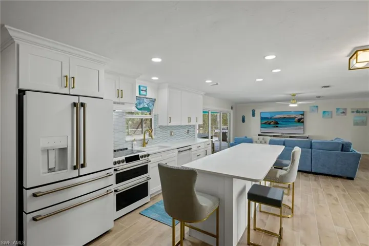This beautifully remodeled ground-level home is nestled in a convenient mid-island location, close to shops, restaurants, and all the essentials. Situated on a private road in a friendly neighborhood, this turnkey property is ready for you to move in and enjoy. Out back, a large, newly resurfaced screened-in pool and lanai provide the perfect setting for sunny days, with a lush preserve offering tropical privacy. Inside, the home has been fully updated and thoughtfully designed, featuring stunning flooring, a modern kitchen, and updated baths. The split floor plan ensures comfort and privacy, and two central A/C units, both less than a year old, include a dedicated system for the master suite. With four bedrooms and a newly renovated office—complete with an attached updated bathroom that can easily serve as a fifth bedroom—this home offers flexibility and convenience. Whether you’re searching for a family retreat, a vacation getaway, or a stunning move-in-ready property in a great neighborhood, this home is an incredible find!