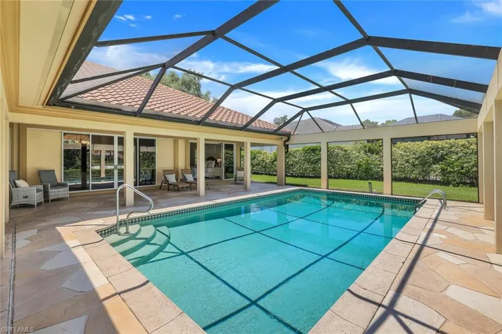 Prepare to be enchanted by this recently renovated single-family sanctuary nestled in the coveted community of Bonita Bay. Welcome to the epitome of luxury living in the prestigious Creekside enclave, where sophistication meets comfort at every turn. Step inside and let the allure of this meticulously crafted residence sweep you off your feet. With brand new flooring, fresh paint, and upgraded lighting throughout, every corner radiates elegance and charm, promising a lifestyle of unrivaled refinement. Indulge in culinary delights with state-of-the-art kitchens both indoors and out, seamlessly blending sophistication with functionality. Gaze upon breathtaking views of the nearby golf course from your expansive outdoor oasis, offering space to unwind and entertain in style. The heart of this home lies within its sprawling great room, effortlessly merging living, dining, and kitchen areas, all with seamless access to the outdoor retreat. Discover further delights including a formal living room, a spacious laundry area, three luxuriously appointed bedrooms, and three baths adorned with marble flooring, ensuring comfort and convenience for family and guests alike. Outside, the magnificent pool and lanai beckon, providing ample covered space for alfresco dining and lounging amidst serene surroundings. Inside, the chef’s kitchen awaits, boasting new appliances, a pantry, and an island with abundant cabinet and storage space, promising culinary adventures aplenty. With a palatial primary bedroom, luxury plank flooring throughout the main living areas, voluminous ceilings, and sliding doors leading out to the pool area, this home seamlessly blends style with functionality. Recent upgrades including : AC unit, pool cage, and partial hurricane impact windows offer peace of mind for years to come. Rarely does a home of this caliber grace the market in Bonita Bay, Southwest Florida’s premier community offering private club membership, a beach club, and a prime location. Don’t let this opportunity slip away – make this exceptional residence your own and experience the pinnacle of luxury living in paradise.