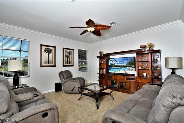 Beautiful, stunning home located in the Westminster Golf Club Community. This 4 bedroom, 2 bathroom home has it all. Almost 2200 square feet of living space under air. A brand new tile roof, a new remote controlled roll-down hurricane screen that protects the rear lanai, all newer (3 years old) Whirlpool stainless steel kitchen appliances. Solid surface counters in the kitchen and baths. Tile floors throughout, and all the bedrooms are carpeted. The driveway, walkway and front porch are stamped concrete. The southern facing swimming pool has a newer pool heater/chiller and pump. Unobstructed views from the swimming pool area overlook the 15th green and a stocked pond that can be fished. The community offers low HOA fees which include 24-hour manned security at the front gate, tennis, pickleball, bocce and basketball courts, gym, community pool and hot tub. The community offers an event calendar which includes activities such as food truck night, water aerobics, trunk or treat, and other various activities. Golf memberships can be purchased, or pay and play is also available. There is also a driving range. The golf course offers an onsite bar and restaurant. Call today to schedule your viewing of this lovely home.