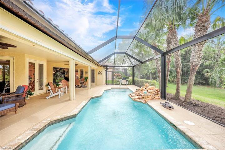 Come explore this split plan three-bedroom plus den, three-bath home in the heart of Lely Resort. Located in the Lely Island Estates neighborhood, this entertainer’s home is set on a parklike lot overlooking a preserve and the third green of the Flamingo Golf Course. This property is being offered with furnishings and features an open kitchen with granite countertops, newer stainless appliances, newer HVAC, resurfaced heated pool and spa with large under roof poolside entertaining area and pool bath, a recently installed tile roof and screen enclosure with whole house gutters and leaf guards. Enjoy the serenity of the water cascading into the pool from the custom rock waterfall feature. The home is also equipped with electric and manual roll-down hurricane shutters for excellent security and storm protection. New owners will have the option to join the award-winning Players Club and Spa as well as the Classics Golf and Country Club or enjoy daily play publicly available at the Flamingo and Mustang championship golf courses. Anything you choose is available at this Florida hideaway just minutes from world-class shopping, dining and beaches in Naples and Marco Island.