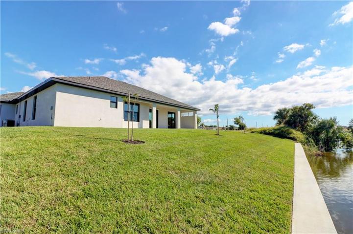 Seller will provide $10,000 credit towards buyer closing costs!! MOVE IN READY NOW!! Come live in paradise with this beautiful BRAND NEW home on FRESH WATER CANALl! New seawall installed. NOT in a flood zone. Open floor plan with attached dining room, 3 bedrooms with den, 2 bath, and 3 car garage. CITY WATER; not on well. Plenty of room for a pool. Kitchen has granite countertops, stainless steal appliances, and soft close drawers and cabinets. Cozy floorplan. 10ft tray ceilings in great room and master bedroom. Tile throughout the home. HURRICANE IMPACT WINDOWS AND SLIDING DOORS; NO NEED FOR SHUTTERS. 3 car garage with painted floor and garage door opener. This home offers great curb appeal with paver driveway, Floratam grass, and automatic sprinkler system. Close to the beach and shopping with great schools in the neighborhood. Price reduced to sell; call for a showing before it is sold!!