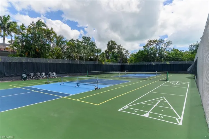 Residents enjoy access to a heated pool and spa, tennis and pickleball courts, and outdoor gathering areas with grills and picnic space. The location truly stands out–just across the street from Marco Island’s white-sand beaches and within easy walking distance to popular dining spots like Davinci’s, Oyster Society, Marco Prime, and the Salty Dog.