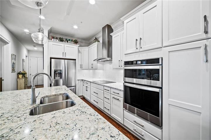 Located in Esteros mid-rise community offering elevator living and oversized 2 car garages with 18 foot wide doors. Upgraded construction with every interior wall fully insulated, 8 foot tall solid core interior doors, 10 foot ceilings throughout and all exterior windows and doors are impact glass. This Doria floor plan offers a great room that is bright and offers lots of space for entertaining. Kitchen has a wall oven and microwave, stainless hood vent over the electric cooktop, quartz counters, subway backsplash and a center island to gather around. You will think you live in a spa every day when you see the soaking tub and shower in the main bathroom, dual vanities and sinks too! Even the guest bedroom in this model has a walk-in closet. Both bathrooms offer tile to the ceilings and not just to the shower head. Den/study offers a french door. Laundry room with a laundry sink for your convenience. Ample size screened lanai allows you to sit and view the gorgeous courtyard from the 3rd floor of your new home and the sunsets are beautiful from there. Come and see what your new lifestyle looks like, you won’t be disappointed. AGENTS READ CONFIDENTIAL COMMENTS PLEASE.