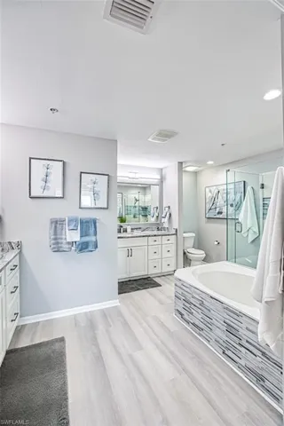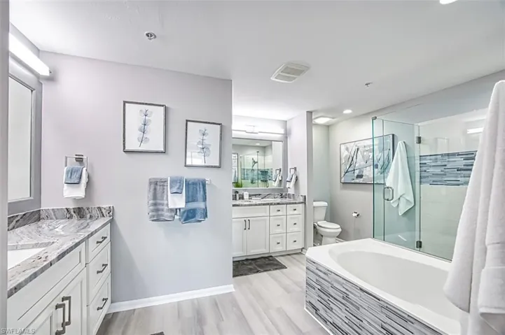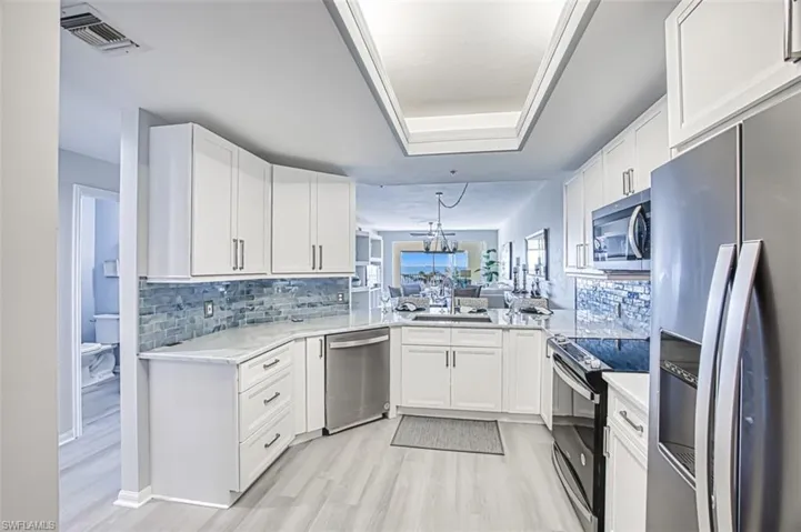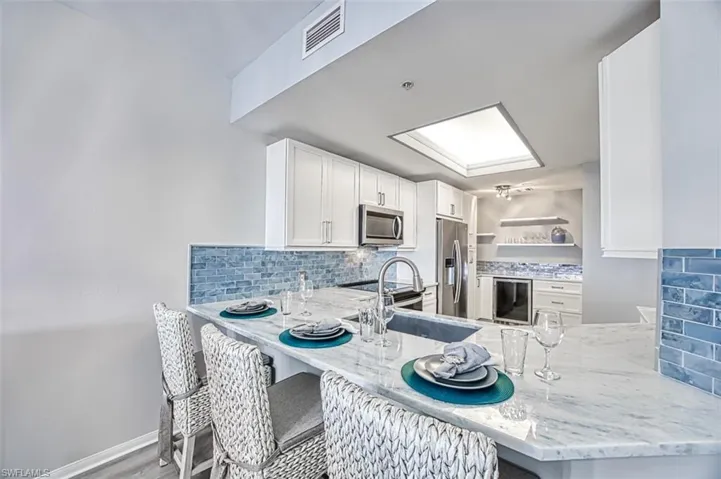 Welcome to Water’s Edge, a stunning riverfront community nestled in the Iona area of Fort Myers, close to Sanibel/Captiva Islands and Fort Myers Beach. This exclusive enclave offers a serene and active lifestyle with a wealth of amenities that include: • Riverfront Marina Basin with a sandy beach • 600-foot fishing pier (under reconstruction) and boat ramp • Marina with wet slips and dry storage • Community pool and spa • Tennis/Pickleball courts. Located in a Harbor Place Vista Building, this recent $100,000 plus comprehensive remodeled 3-bedroom, 2.5-bath condominium offers 1,656 sq. ft. of living space and is situated on the fourth level above the garage. Enjoy breathtaking views of the river and community amenities from your screened lanai. The unit features: • Open-concept design with tile and luxury vinyl flooring • Gourmet kitchen with white cabinetry, quartz countertops, tile backsplash, brushed nickel hardware and a wine bar • Stainless Steel Appliance package • Breakfast bar that overlooks the living area, perfect for entertaining • Walk in Closet with built in racks and organizers. This turnkey designer furnished home is ready for you to move in—simply unpack and start living the dream. Convenient under-building parking with a vehicle wash area adds to the ease of living in this meticulously maintained property. Live the Florida lifestyle at Water’s Edge—where riverfront beauty, comfort, and community come together.